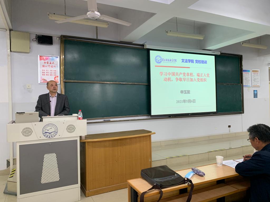 会上,申玉发书记向全体入党积极分子介绍了中国共产党的基本属性及基本特征,详细解读了中国共产党章程,并强调作为入党积极分子应该端正入党动机,积极争取早日入党,具体应做到以下几点:一是要牢记党章,时刻对照党章,检查自己;二是要努力学习党的基本知识和基本理论,主动接受党的培养和教育,不断明确对党的认识;三是要立足自身实际做模范、做表率,将伟大的共产主义理想和信念与实际学习、工作和生活结合起来,实践共产主义。