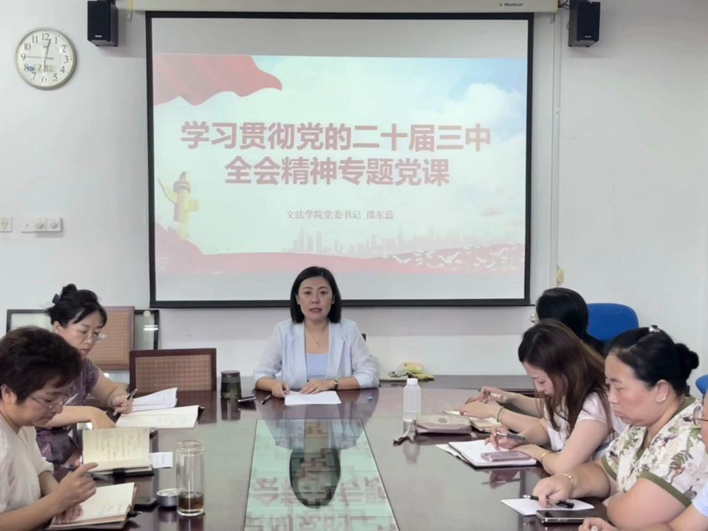 为深入学习贯彻党的二十届三中全会精神,教育引导全体党员干部把思想和行动统一到全会精神上来,2024年8月30日下午,网投十大信誉可靠平台党委书记邵东蕊讲授“学习贯彻党的二十届三中全会精神”专题党课,学院党委委员、党支部书记、学生党员代表参加学习。