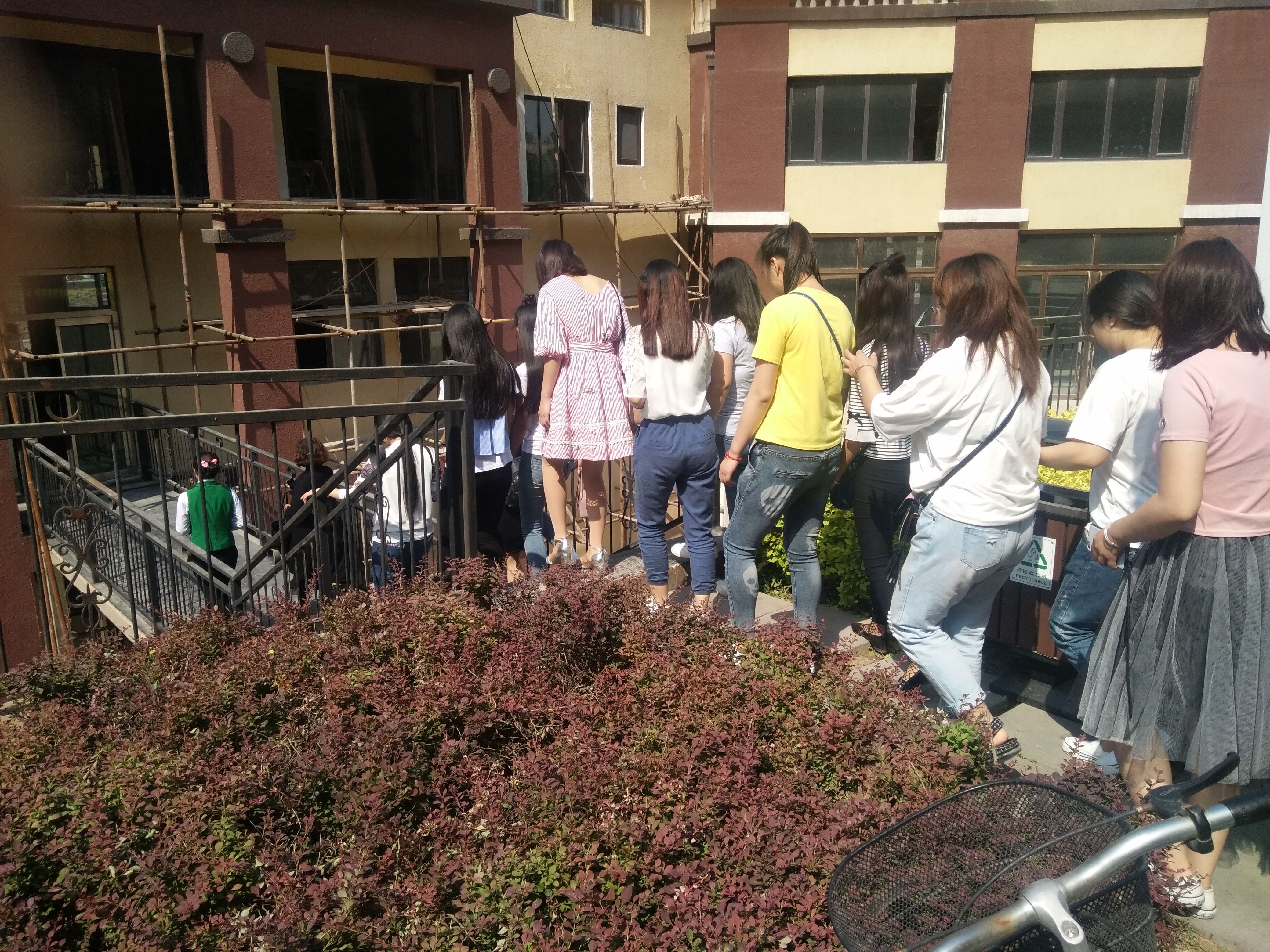 到达香邑溪谷社区后,物业前台工作人员带领同学们熟悉社区建筑绿化环境和公共服务设施。随后同学们进入物业管理办公室了解社区内的工作及活动。最后,同学们向前台的工作人员咨询一些有关社区服务专业的问题以及个人专业的未来发展的问题。