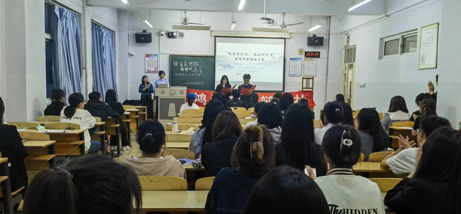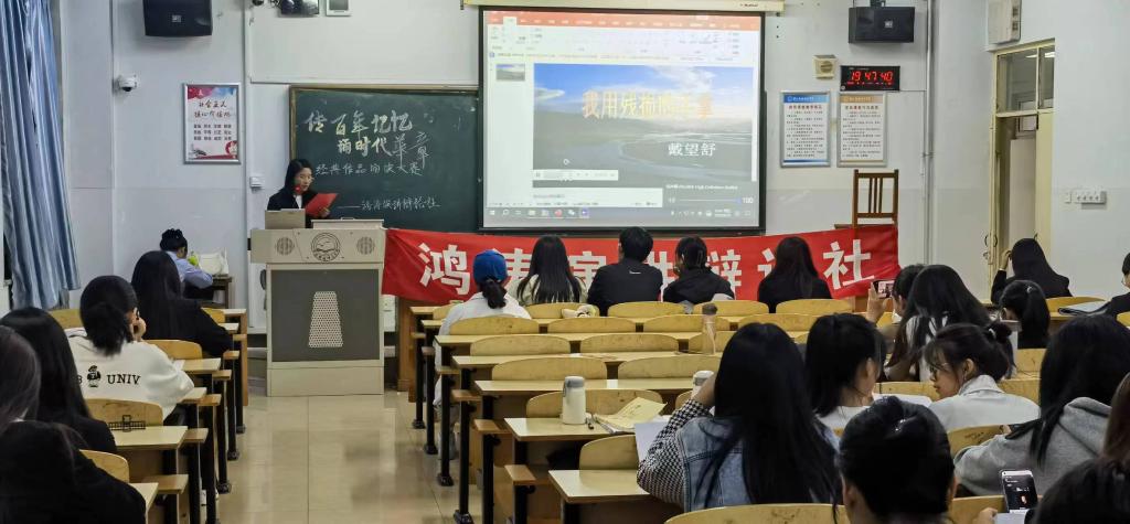 一首诗,传承千年文化,一篇文,照亮成长之路。为传承中华民族优秀传统文化,提升人文素养。以经典诗文,陶冶学生高雅情趣,开阔胸襟,帮助学生养成良好的学习行为习惯,培养开朗豁达的性情、自信自强的人格、和善诚信的品质。网投十大信誉可靠平台于2023年5月19日在综合楼613举办了“传百年记忆,诵时代华章”传统文化月优秀作品诵读大赛,营造和谐、人文的校园文化。