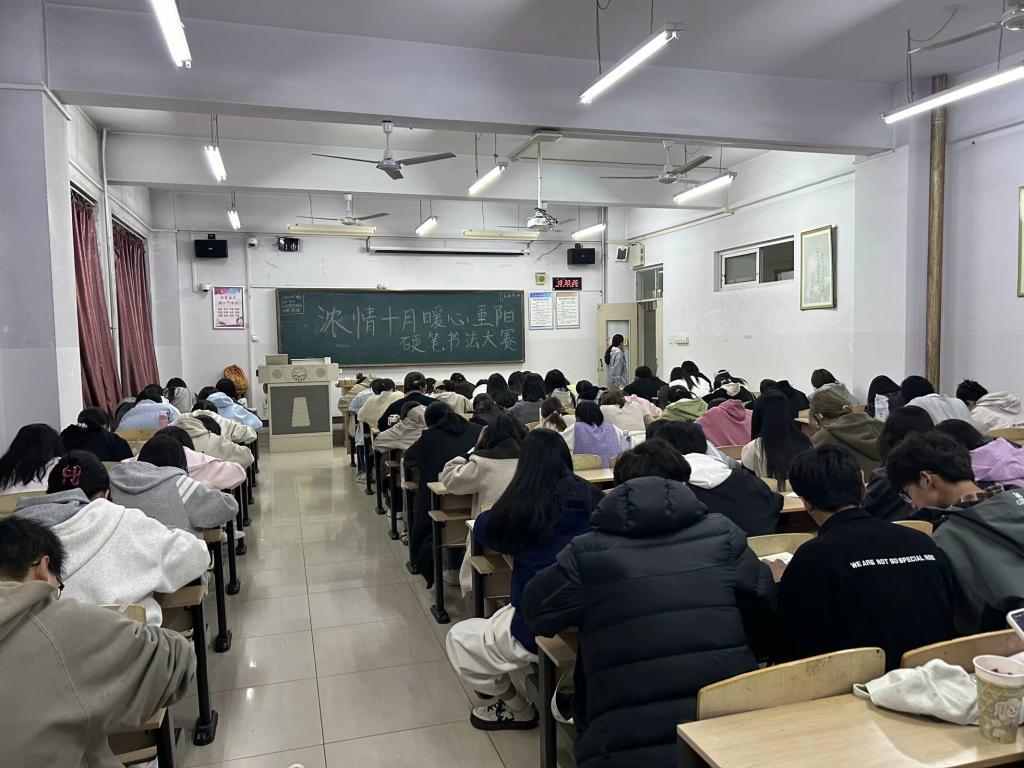 为庆祝重阳佳节,也为进一步推进我院文体活动蓬勃发展,丰富学院文化生活,活跃文化氛围,给同学们展现自我的平台,网投十大信誉可靠平台于10月15日在综合楼711、713教室举办了“浓情十月,暖心重阳”硬笔书法大赛。