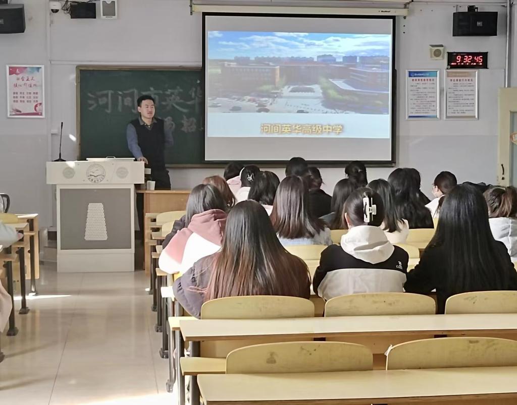 河间市英华高级中学张老师介绍了河间市英华高级中学的校园文化和校园建设,学校全面贯彻落实“立德树人”的根本任务,采用衡水名校模式办学,学生成绩优异,学校还注重教师的培训教研与日常工作。张老师还介绍了英华高级中学教师岗位的薪资与待遇,并耐心解答了同学们的疑惑。宣讲过后,每位毕业生都进行了精彩的试讲,毕业生的表现得到了学校老师的高度认可,最终有5位毕业生跟单位达成了就业意向。
