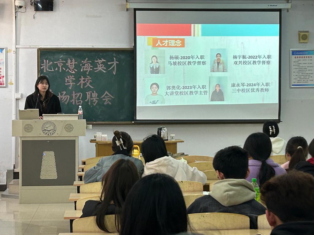 北京慧海英才学校是一家结合了优质教育资源和先进信息技术的培训学校。近年来其发展规模不断扩大,产业覆盖面广,提供了多样化的就业岗位。该学校地理位置优越,通勤便利,员工住宿环境良好,薪资福利优厚,人才晋升空间大。前来参加的同学对此产生了浓厚的兴趣,随后的试讲和面谈环节表现优异。