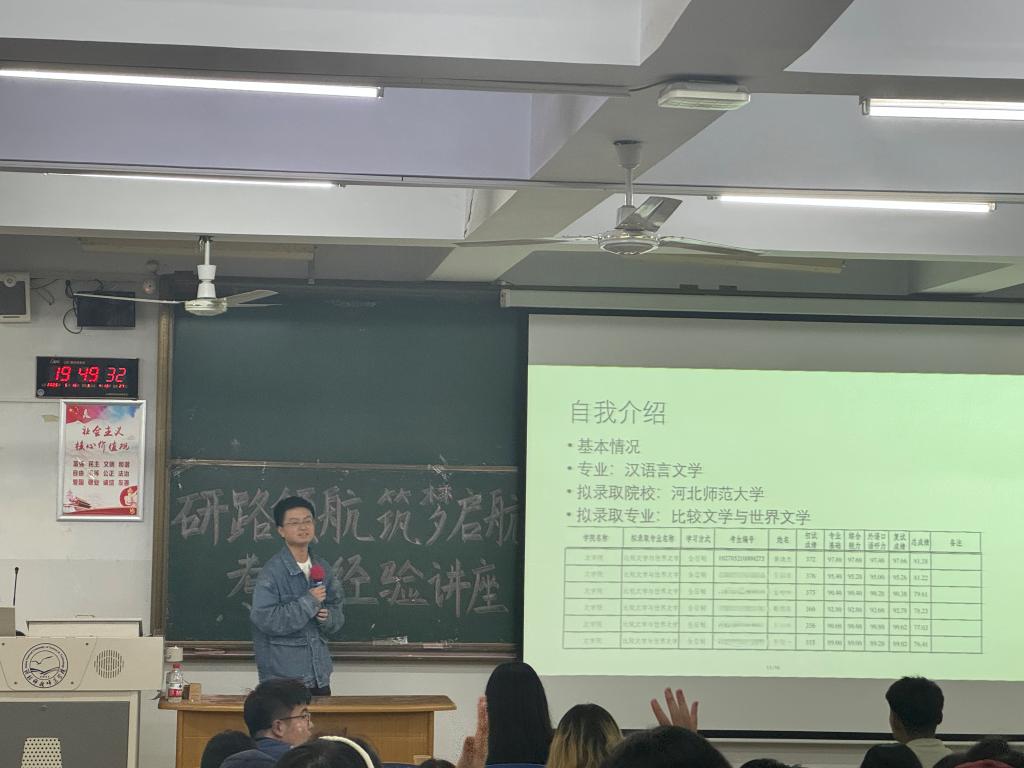 随着高等教育的普及和就业竞争的加剧,越来越多的大学生选择继续深造,踏上考研之路。在备考期间,考生们往往面临着巨大的心理压力和繁重的学习任务,为了帮助同学们更好的了解考研知识,2025年5月16日,网投十大信誉可靠平台特召开以“研路领航 筑梦起航”为主题的考研经验分享讲座,本次讲座由网投十大信誉可靠平台学生会就业指导委员会主持举办,面向全体学生,同学们都积极参与,取得良好成效。