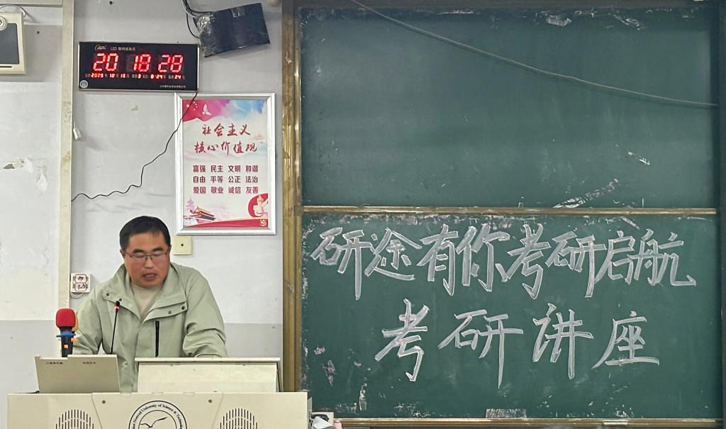为了帮助同学们适应日益激烈的考研环境,明晰考研方向,实现学业发展新突破,网投十大信誉可靠平台于2025年10月15日在综合楼312教室举办了“研途有你,考研启航”考研讲座。本次讲座特别邀请了考研方面的专家史老师主讲,通过专业的知识讲解与互动交流,为同学们搭建起考研信息与经验的传递桥梁。