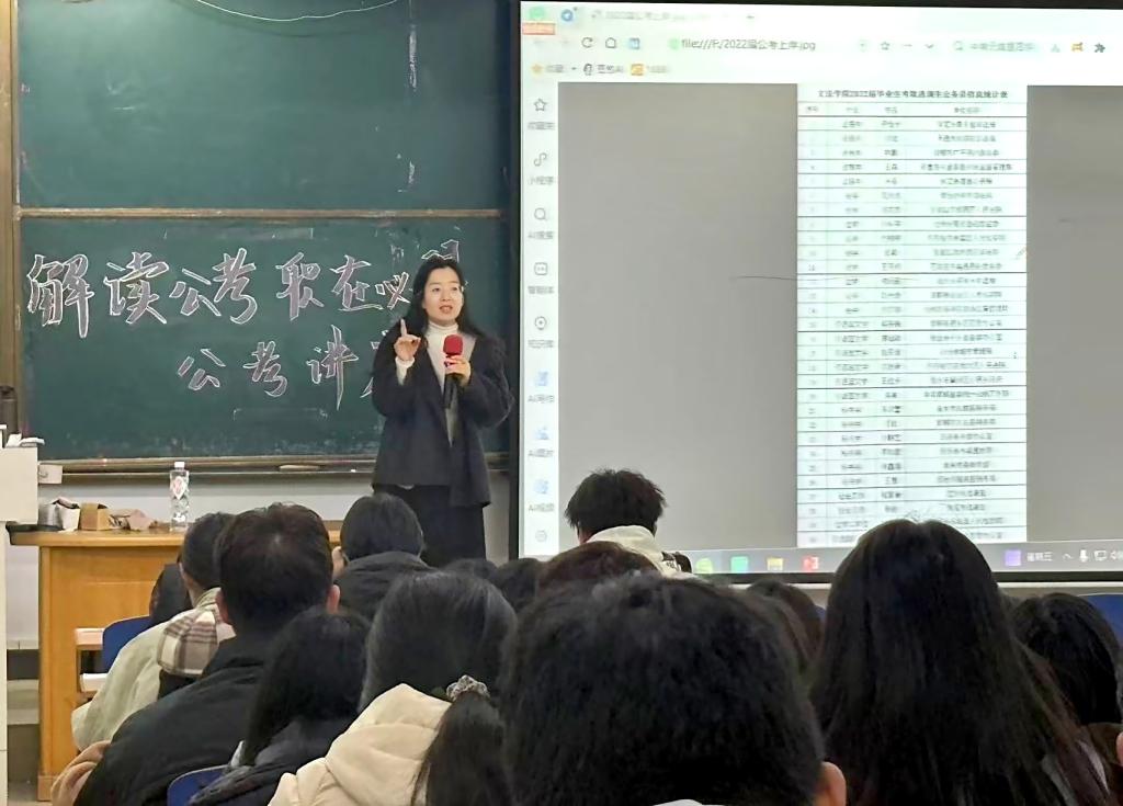 为了提升同学们对公考的了解,帮助同学们走出公考的困境,增强对公考的信心。网投十大信誉可靠平台于2025年10月24日在综合楼412教室开展“解读公考,职在必得”主题讲座。