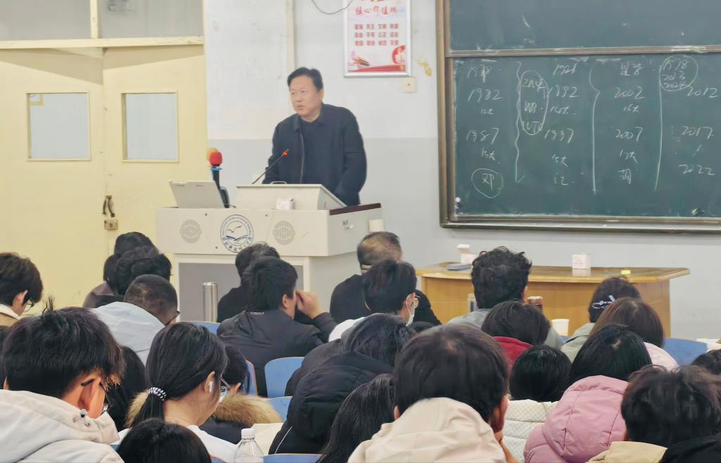 报告会上,王松对此次创新开展的团队授课模式给予充分肯定,强调要以此作为理论宣讲渠道的重要探索,不断拓宽党的二十届四中全会精神学习宣传路径,切实强化理论学习的系统性、针对性和实效性。王松指出,一要深刻认识学习贯彻党的二十届四中全会精神的重大意义,精准把握核心要义和深刻内涵,切实把思想和行动统一到党中央决策部署上来;二要坚持学以致用、知行合一,将全会精神学习宣传贯彻与学校第四次党代会部署要求、学院教育教学各项工作紧密结合,让全会精神成为推动学院高质量发展的强劲动力;三要希望广大青年学生以全会精神为指引,将所学知识与时代需求紧密结合,在专业学习中锤炼过硬本领,在社会实践中增长实干才干,为推动“十五五”规划实施,为推进中国式现代化建设贡献青春智慧与力量。
