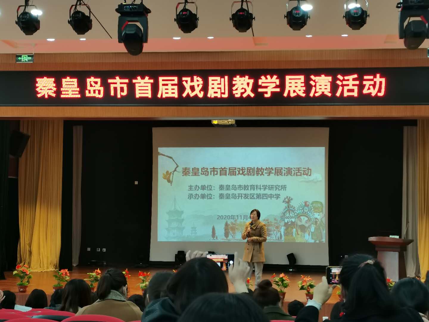 秦皇岛首届戏剧教学展演是为了为全面贯彻统编语文教材“活动•探究”戏剧单元的编写意图,提升学生语文学科核心素养而举办。参加展演的有秦皇岛教育科研所各位领导,秦皇岛市各中学骨干教师,共计200余人。